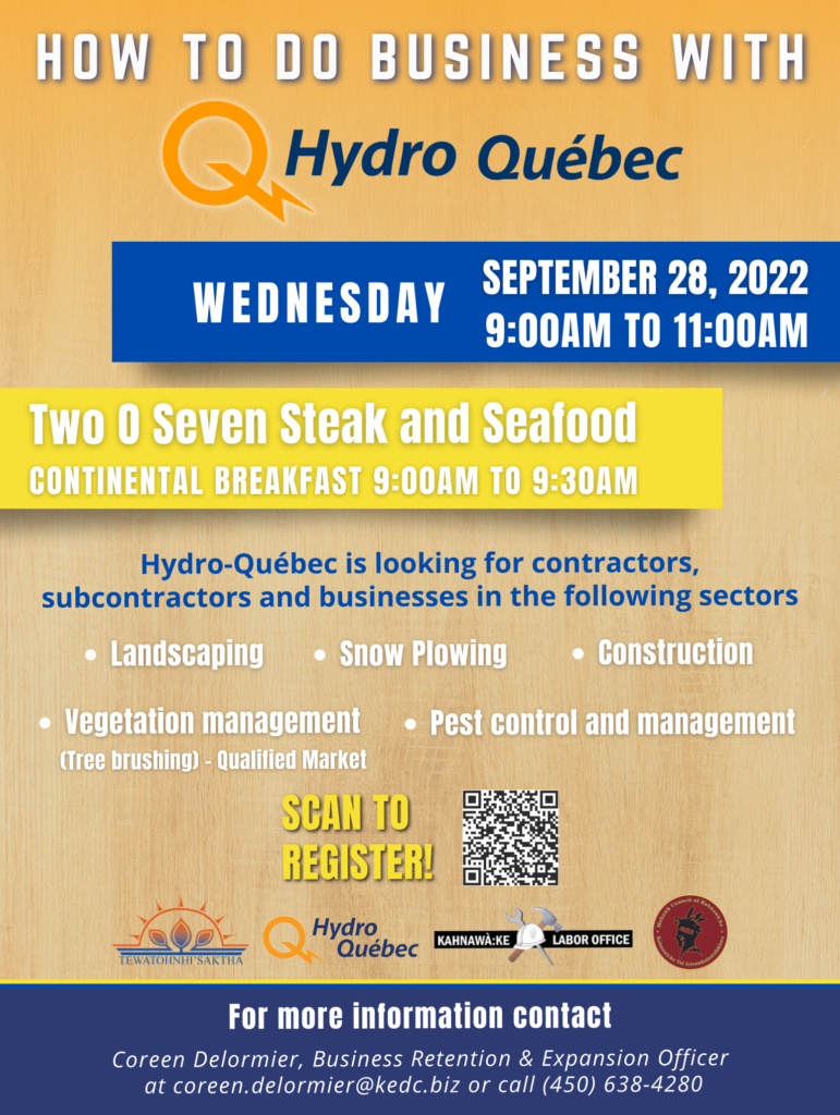 Hydro-Québec is looking for contractors, subcontractors and businesses in the following sectors for upcoming projects. Landscaping Snow Plowing Construction Vegetation management (Tree brushing) – Qualified Market Pest control and management Tewatohnhi’saktha and the Kahnawake Labour Office are inviting participants to an information session on how to sign up and find out how your business can…