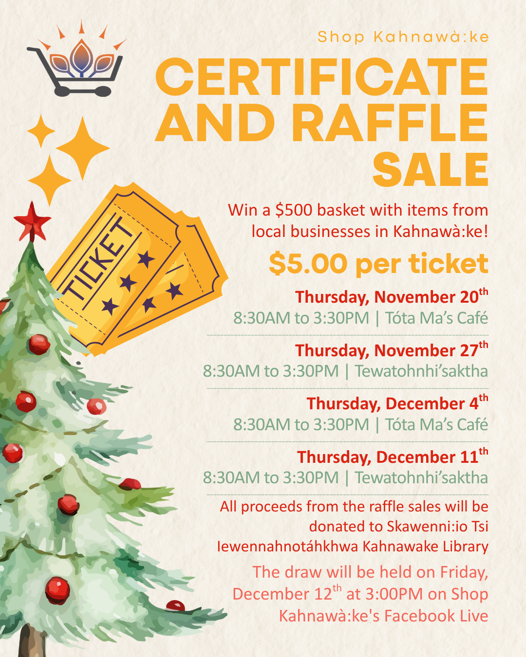 Get into the holiday spirit with Shop Kahnawà:ke’s Certificate & Raffle Sale!