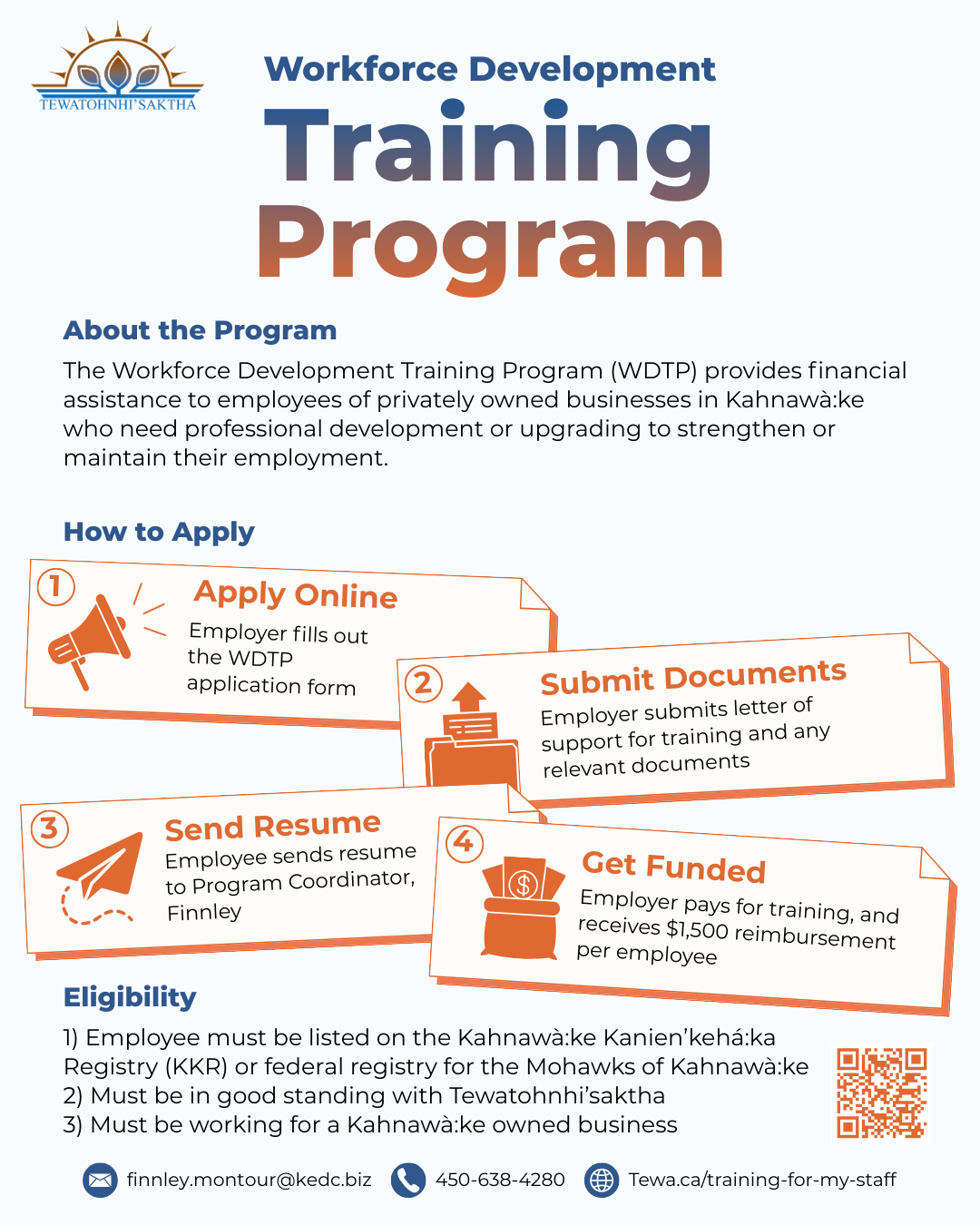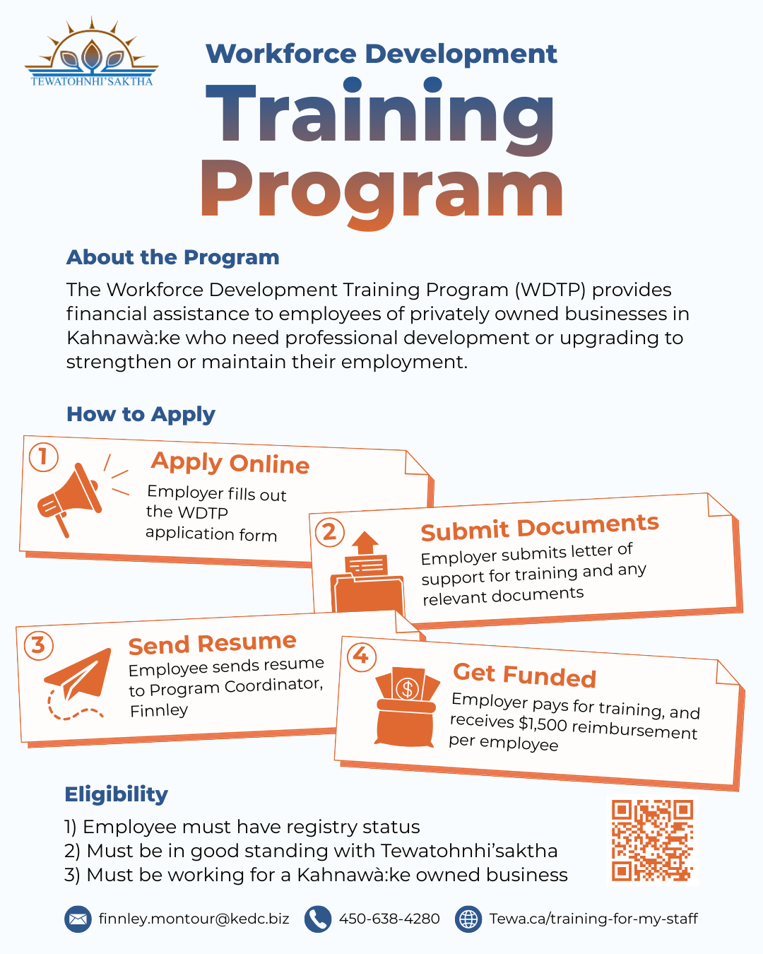 - The training must be recommended by the employer and immediate supervisor. In the case where it is a private business owner requesting training for an employee, a letter of support from their Tewatohnhi’saktha Business Services Officer, or co-owner, is recommended.